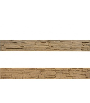 Deska slouží k výškové regulaci betonového plotu. Ukládá se zpravidla jako poslední, případně předposlední na klasické rovné desky. Z jedné strany je vzor štípaného kamene, z druhé strany je hladká.